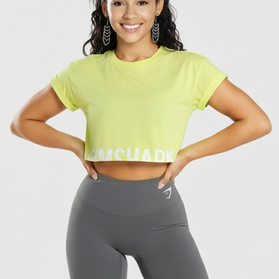 Este crop top deportivo en amarillo neón es perfecto para entrenar con estilo y comodidad. Su diseño moderno, ligero y fresco permite total libertad de movimiento, mientras que el corte corto aporta un look deportivo y juvenil.